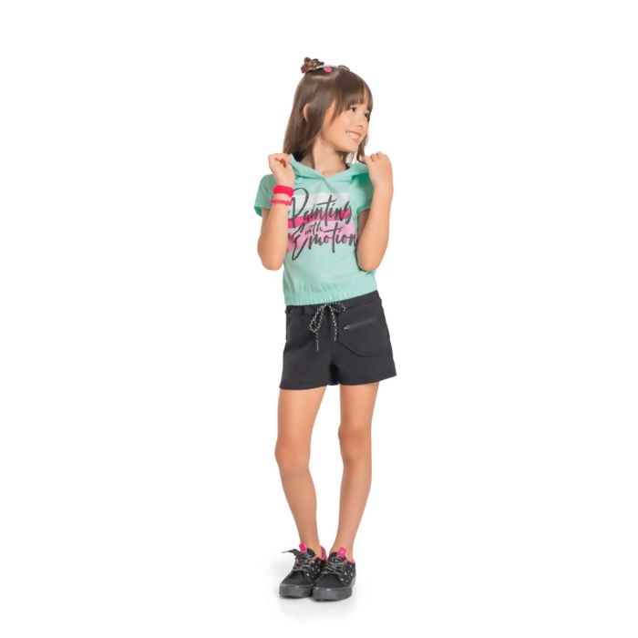Conjunto Blusa Manga Curta meia malha e Short em Moletom