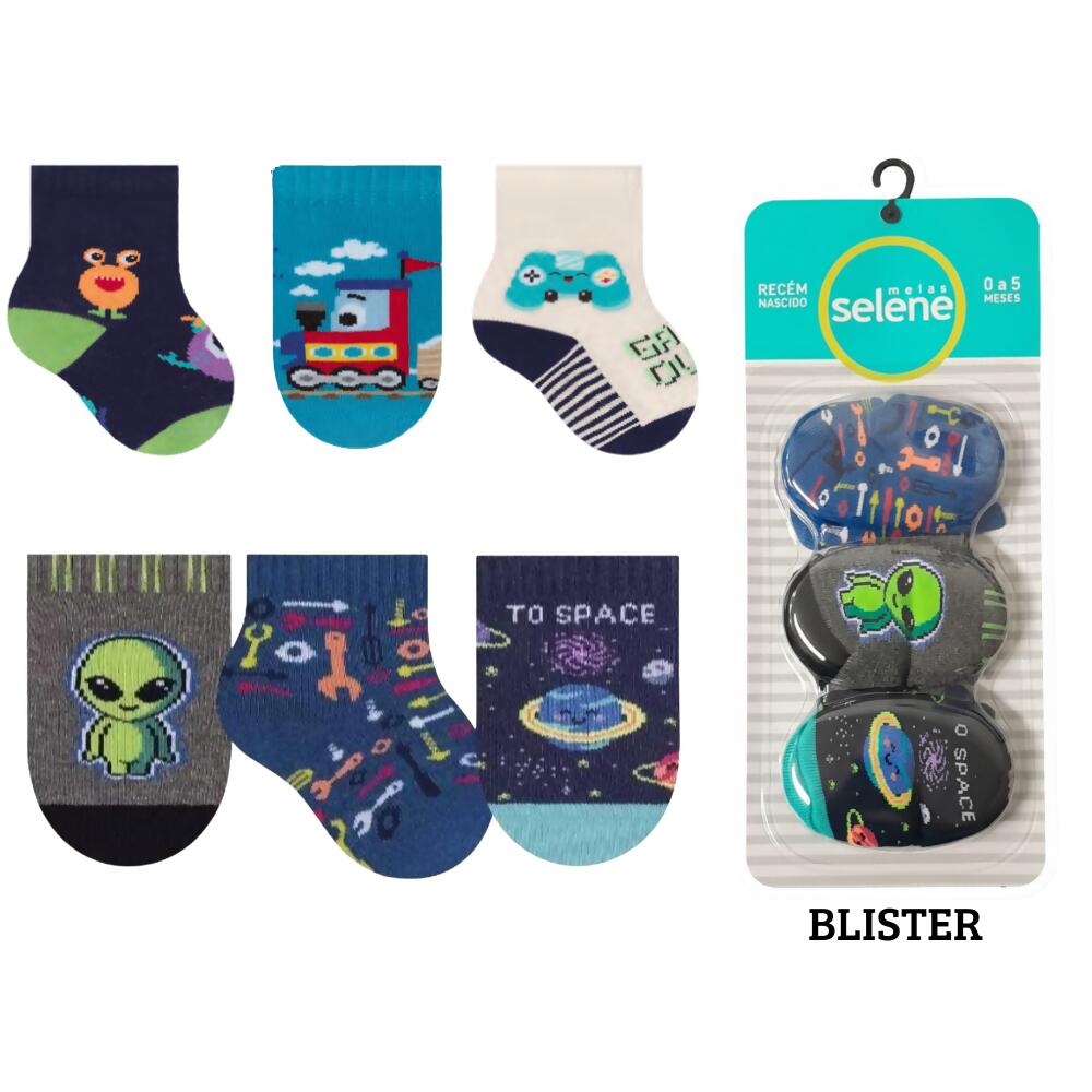 1020 Meia Recém Nascido Blister Meninos c/3pares Tamanho Único/0-5 meses Selene