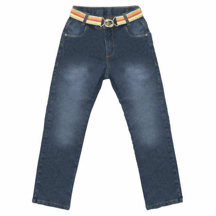 Descrição 1103022 Calça Jeans Feminina com Cinto 4-8 Clube do Doce
