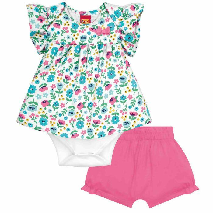 111414 Conjunto Body+Shorts Feminino 'Flores' P-GG KYLY