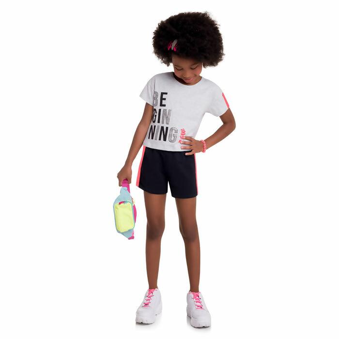 Conjunto Juvenil Blusa meia malha e shorts em moletom sem felpa