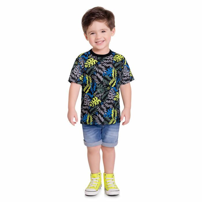 Descrição 111574 Camiseta Manga Curta Masculino 'Folhas' 4-8 KYLY