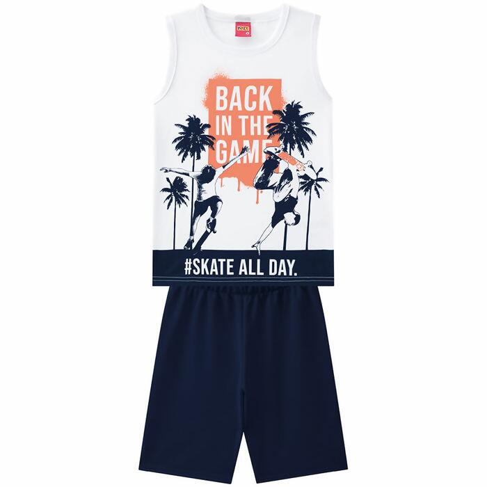 Conjunto Infantil Regata em meia malha e bermuda em moletom sem felpa