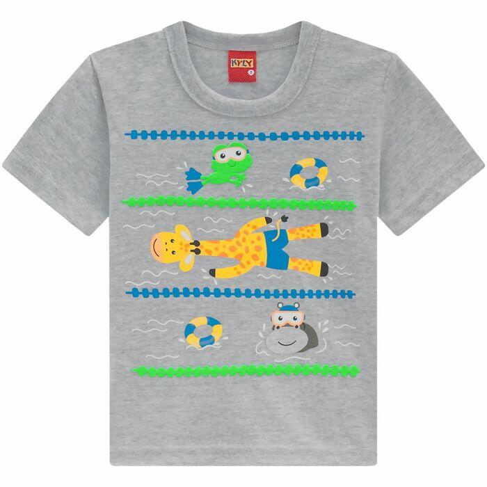 Camiseta Infantil Masculina Kyly confeccionada em Meia Malha, possui modelagem tradicional, divertida estampa frontal de animaizinhos e acabamento no decote com debrum.