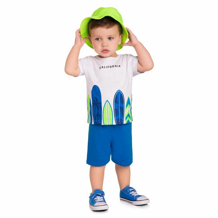 Conjunto Infantil Masculino Kyly é composto por Camiseta em Meia Malha e Bermuda em Moletom sem felpa.