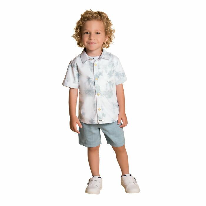 Conjunto Infantil Masculino Milon é composto por Camisa em Tricoline e Bermuda em Tecido Panamá com Linho.