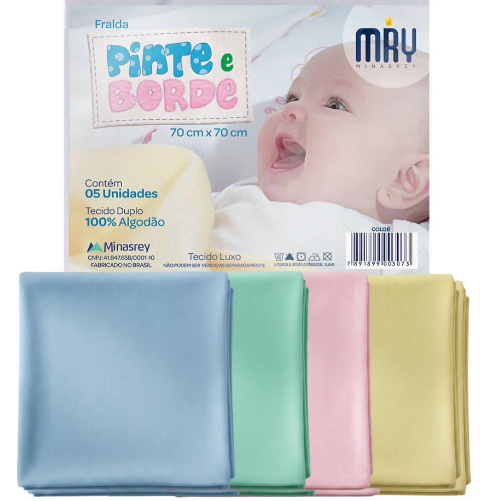 1731 Fralda 70cmx70cm Luxo Pinte e Borde Color c/5un Minas Rey