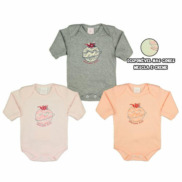 3202 Body Feminino Manga Longa Prematuro WELCOME BABY pacote com 3un Petutinha