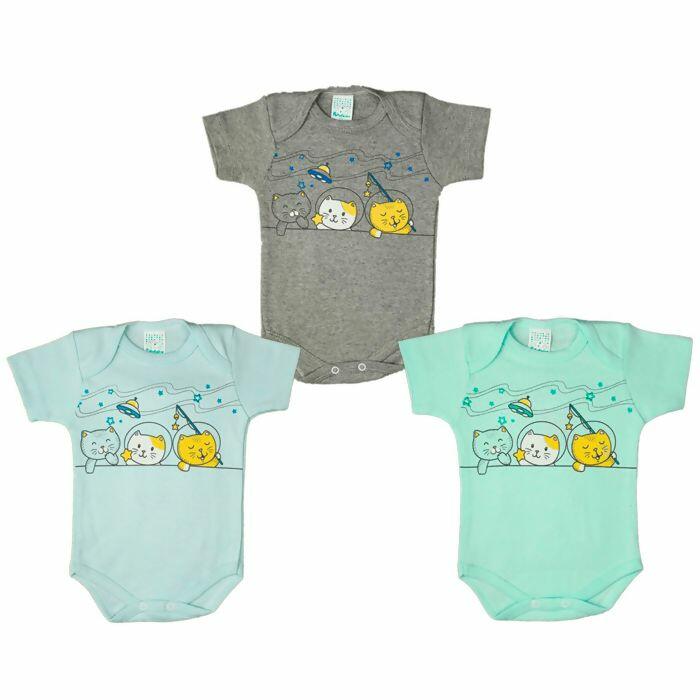 Descrição 7764 Body Masculino M/C GATOS ASTRONAUTAS 3Unid. RN ao EX Petutinha