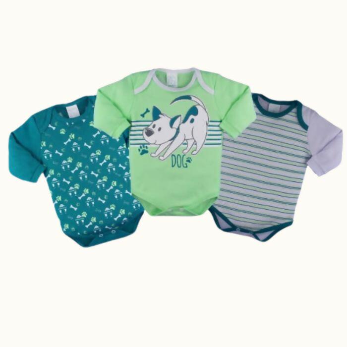 Descrição 8364 Body Masculino Manga Longa pct 3unid. RN ao EX Petutinha