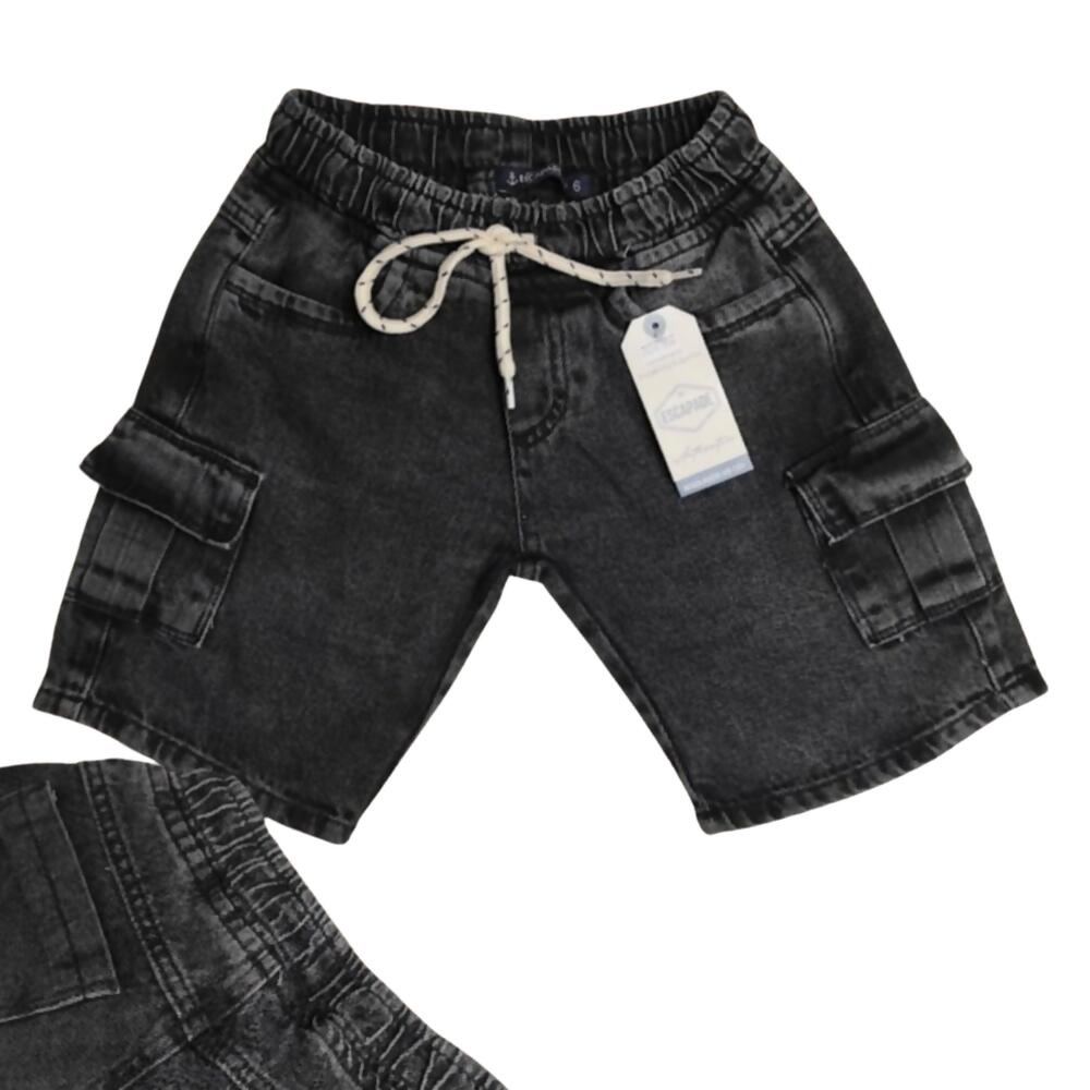 Descrição Bermuda Infantil Masculina 4 a 8 Black Cargo com Elástico Total Escapade | ESC7656