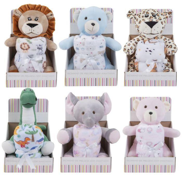 Manta com bichinho de pelúcia, desenvolvida com tecido macio e toque aconchegante, ideal para compor o enxoval com charme e funcionalidade. Acompanha bichinho de pelúcia, oferecendo conforto e estímulo sensorial ao bebê. Produto diferenciado que agrega valor ao mix infantil e é excelente opção para presentes e kits de maternidade.