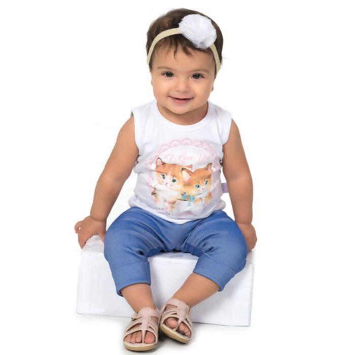 Confeccionada em algodão macio, possui uma estampa encantadora em silk com dois gatinhos super fofos e um lacinho com pérola no centro. Acima, a frase "I Love You" adiciona um detalhe especial que vai conquistar seu cliente!