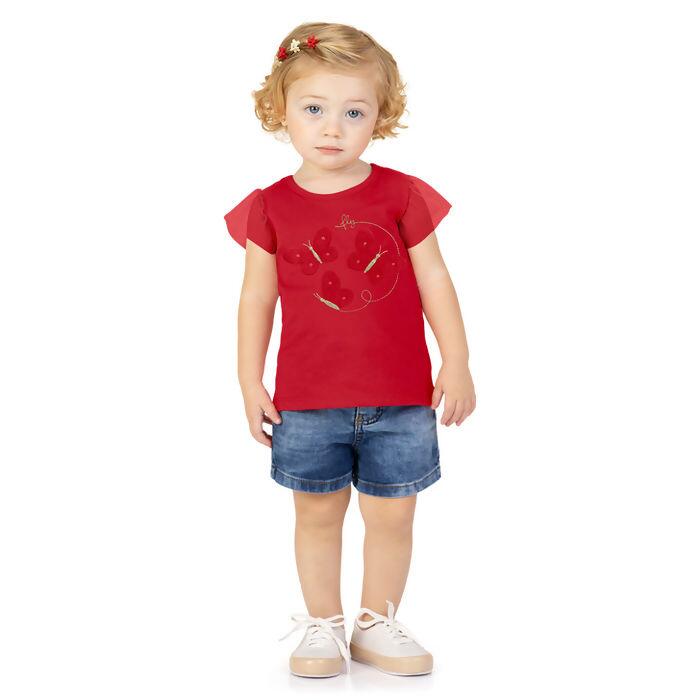 Descrição Blusa Infantil Feminina 4 a 8 Manga Curta Borboletas Kyly | 1001235I