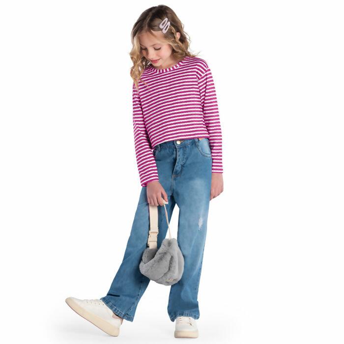 Descrição Blusa Juvenil Manga Longa Cropped Listrada 10 ao 16 Kyly | 1000077