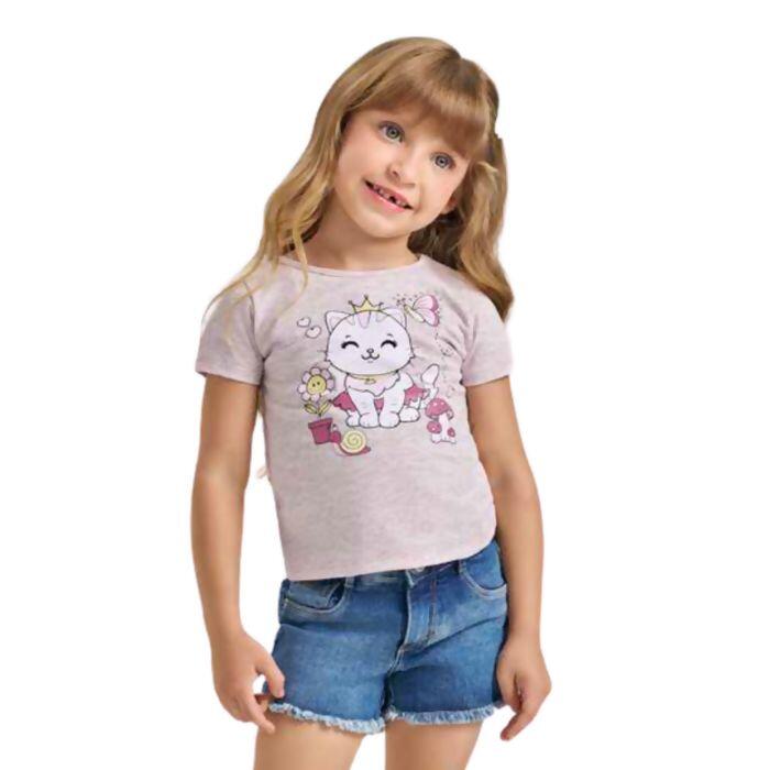 Descrição Blusa Manga Curta Meia Malha GATINHA PRINCESA 1 ao 3 Rechsul | 8813