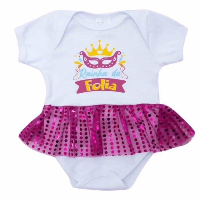 Descrição Body Bebe Feminino Saia Paetê Frases Variadas P ao G Mafessoni | 901943