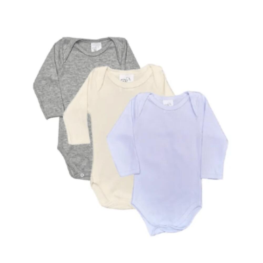 Bodies de manga longa Petutinha, em cores neutras e tecido 100% algodão, oferecendo conforto e qualidade. Disponível em pacote com 3 unidades, perfeito para compor seu atacado com itens essenciais e versáteis!