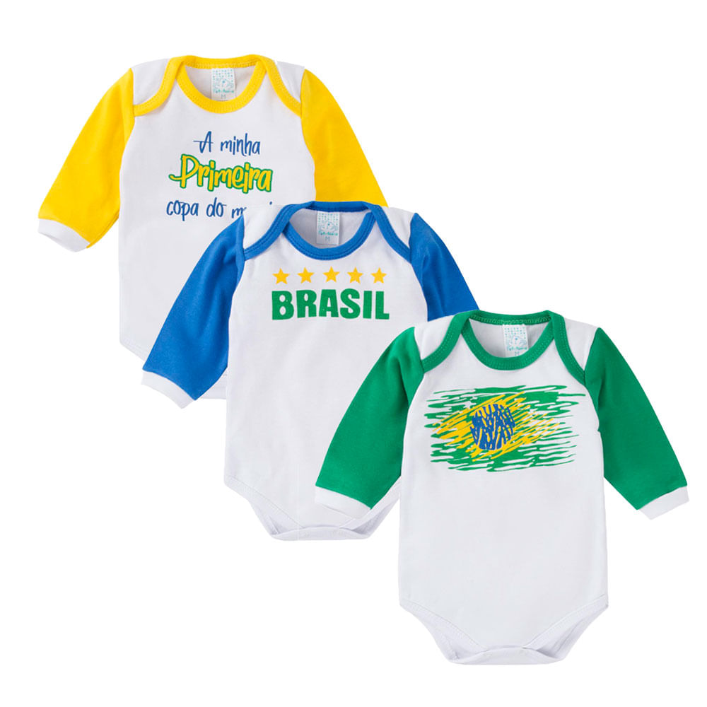 Descrição Body Brasil Masculino RN 3 Unidades Petutinha | PT6399