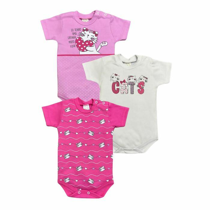Descrição Body Cats Feminino 3 Unidades Manga Curta RN ao EX Petutinha | PT8700