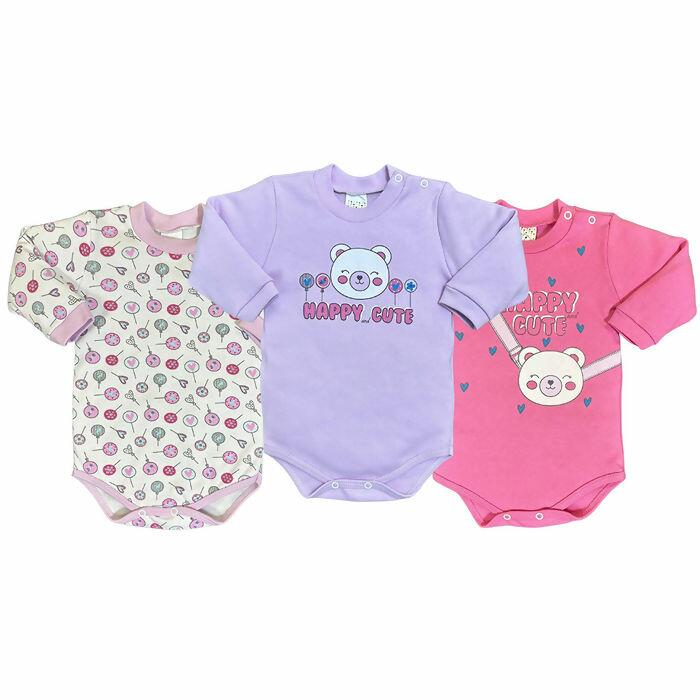 Descrição Body Feminino Manga Longa Girl 3unid. RN ao EX Petutinha | 8581