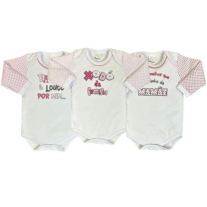 Descrição Body Feminino Manga Longa Frases 3unid. RN ao EX Petutinha | 8595