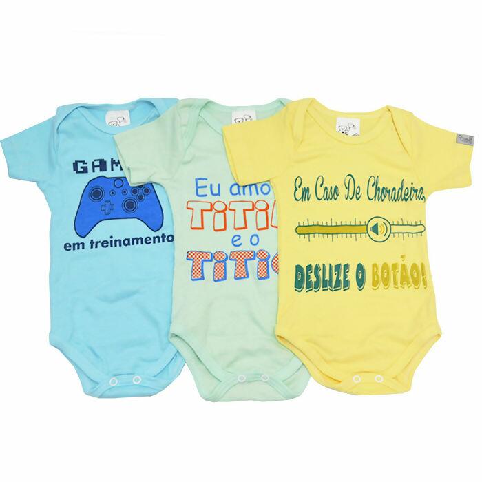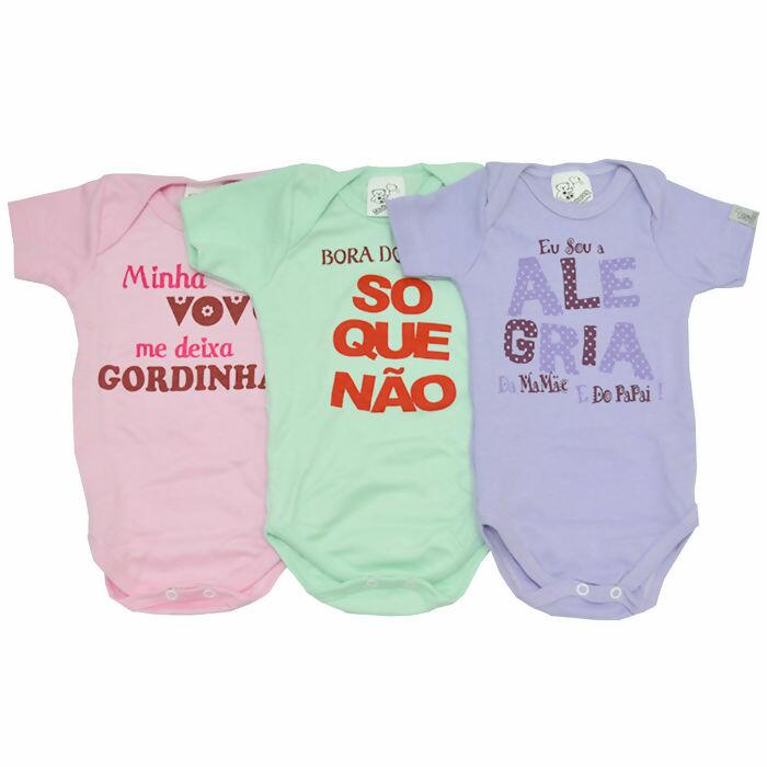 Descrição Body Manga Curta RN Estampa Silk Frases com 3und. Mafessoni | 301285R