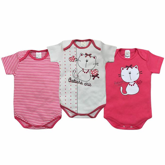 Descrição Body Manga Curta Feminino Gatinha Chic RN ao EX 3Unid. Petutinha | 8528