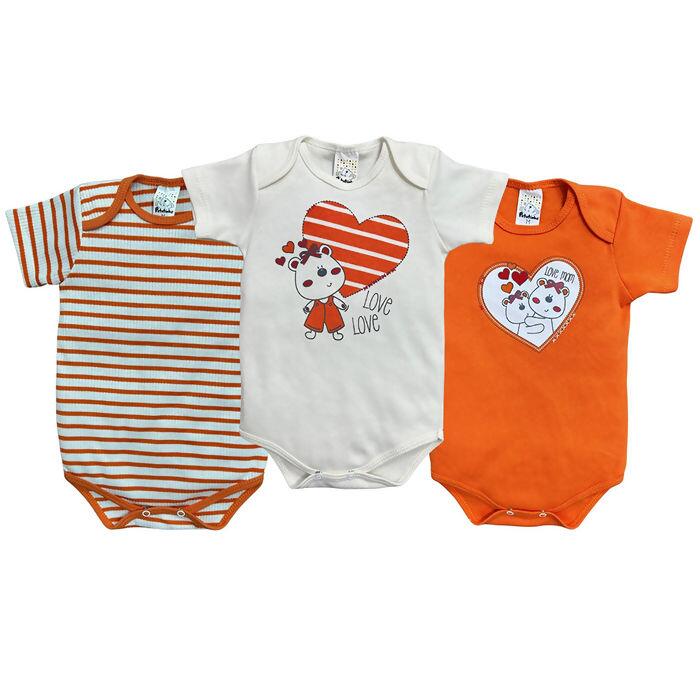 Descrição Body Manga Curta Feminino Love Love RN ao EX 3Unid. Petutinha | 8553