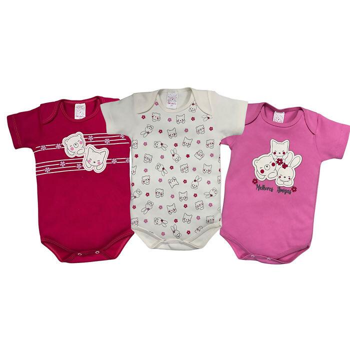 Descrição Body Manga Curta Feminino Ursinha Coelha Raposa RN ao EX 3Unid. Petutinha | 8499