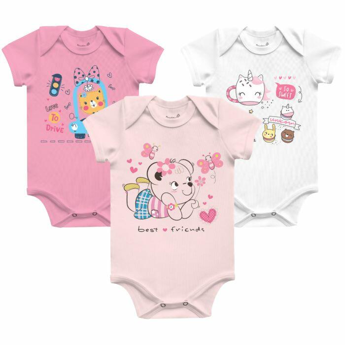Body Manga Curta Feminino URSA com 3Un. RN ao GG Coordena com 06042 Doctor Baby | 02042 VERÃO 2023