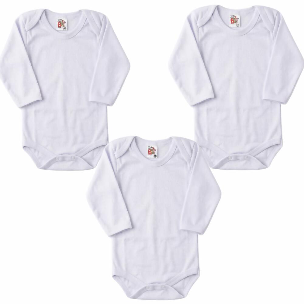 Descrição Body Manga Longa Liso Branco RN ao G Baby Bee Kit 3unidades | 094