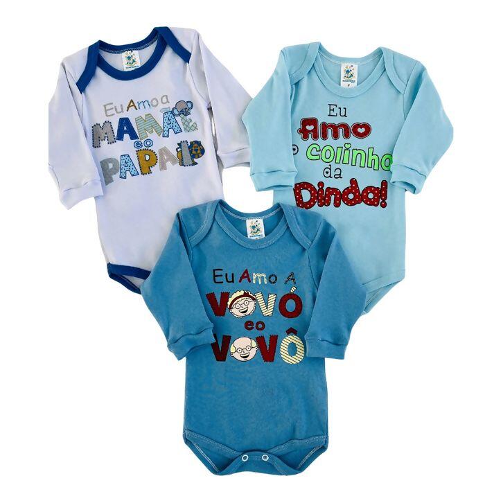 Descrição Body Masculino Manga Longa Frases RN ao G 3unid. Sonekinha Baby | 1021