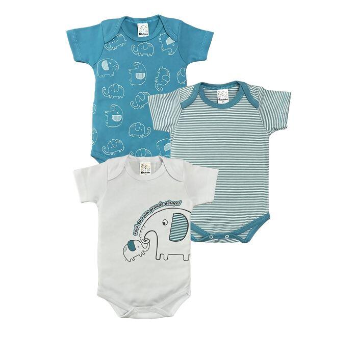 Kit com três bodies confeccionados em malha suave e respirável, com estampas delicadas e alegres. Modelagem confortável e fechamento prático garantem facilidade na troca e conforto ao bebê.