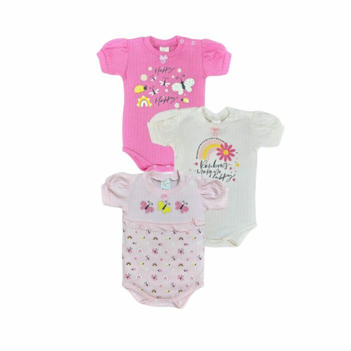 Body RN a EX Manga Curta Fem Borboleta 3un Petutinha | 8650 Cordena Tapa Fralda 8651