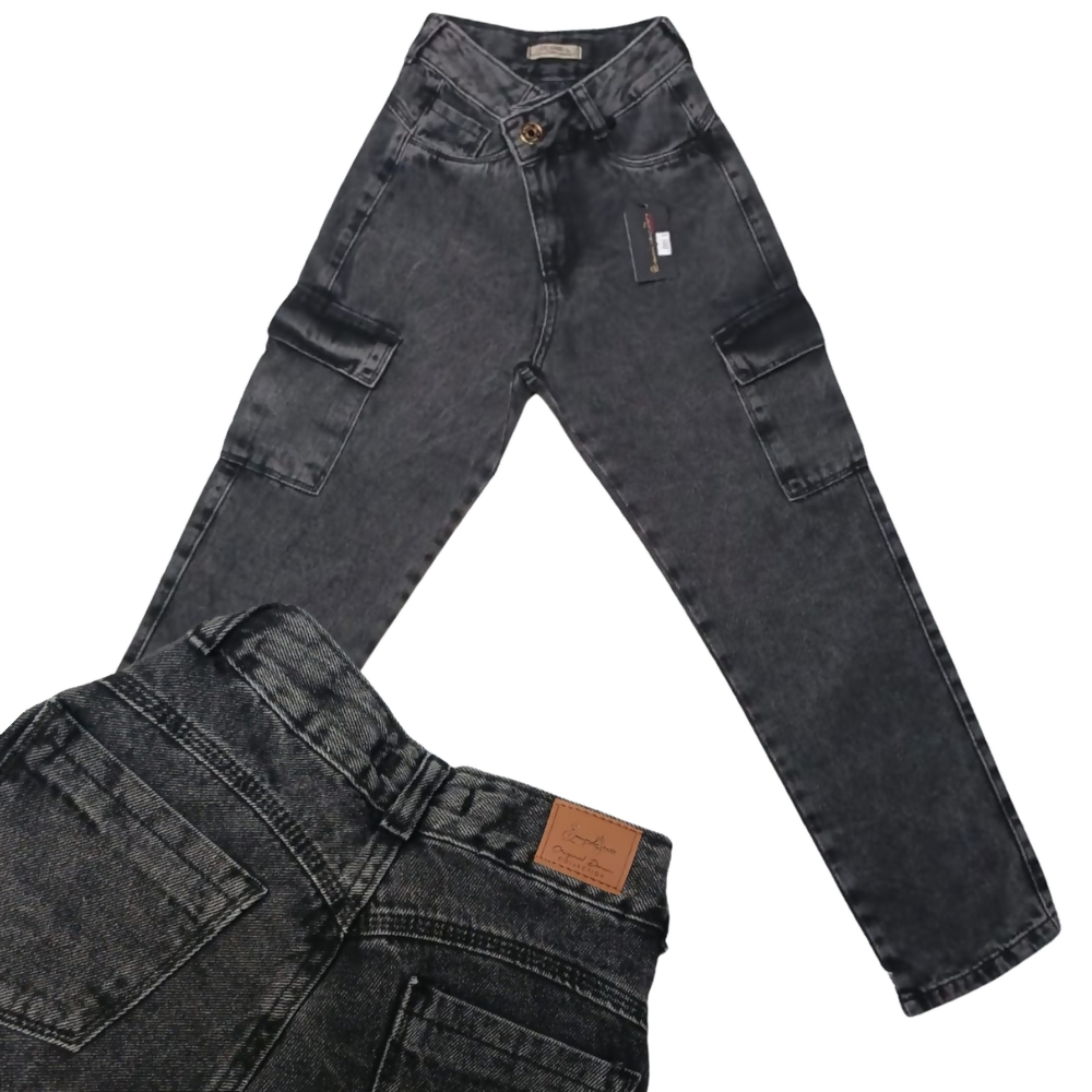 Calça juvenil feminina com modelagem cargo mom, unindo estilo urbano e conforto. Produto estratégico para lojistas que buscam peças diferenciadas e com forte apelo fashion.