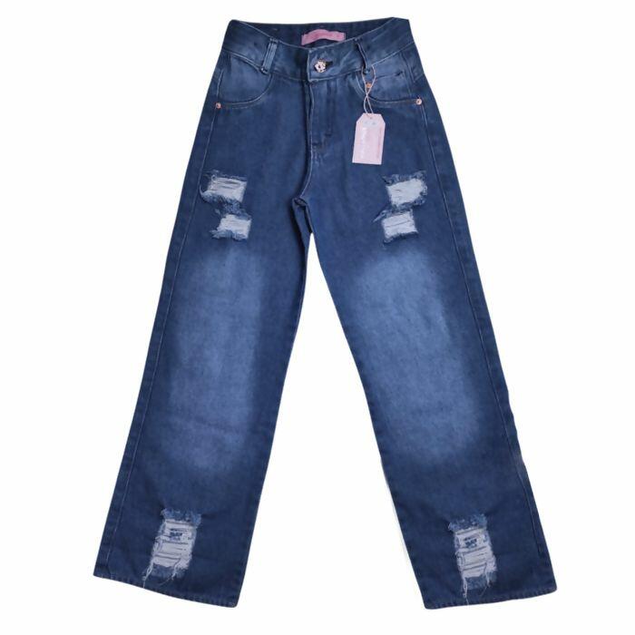 Calça Feminina Infantil Wide Leg Puido Escura 4A8 Escapade | 3072
