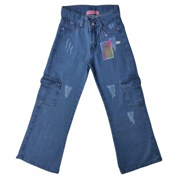 Calça Jeans Feminina Infantill Wide Leg Cargo c/ bolso 4 ao 8 Escapade | 3053