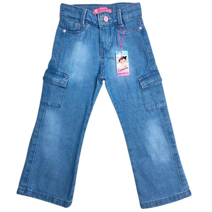 Calça jeans feminina infantil Escapade modelo cargo, com bolsos laterais utilitários e lavagem azul clara. Modelagem reta, confortável e moderna, ideal para compor o mix de produtos infantis. Fechamento com botão metálico e passantes para cinto. Consulte Nossa Equipe de Vendas para informações sobre tamanhos e condições especiais.