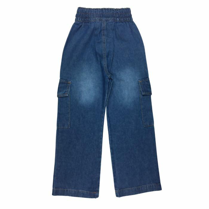 Calça Jeans Juvenil Feminina Wide Leg Cargo 10 ao 16 - Clube do Doce
