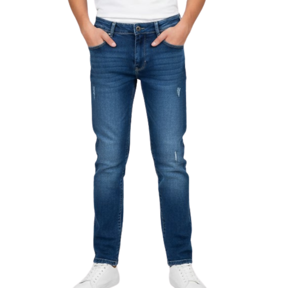 Calça jeans com efeito bigode que agrega valor visual e modernidade à peça. Possui caimento confortável e acabamento cuidadoso, atendendo à alta demanda por jeans diferenciados no varejo infantil.