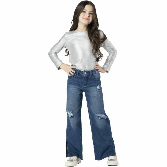 Descrição Calça Juvenil Feminina Wide Leg Escura 10 ao 16 Mania Kids | 6347J