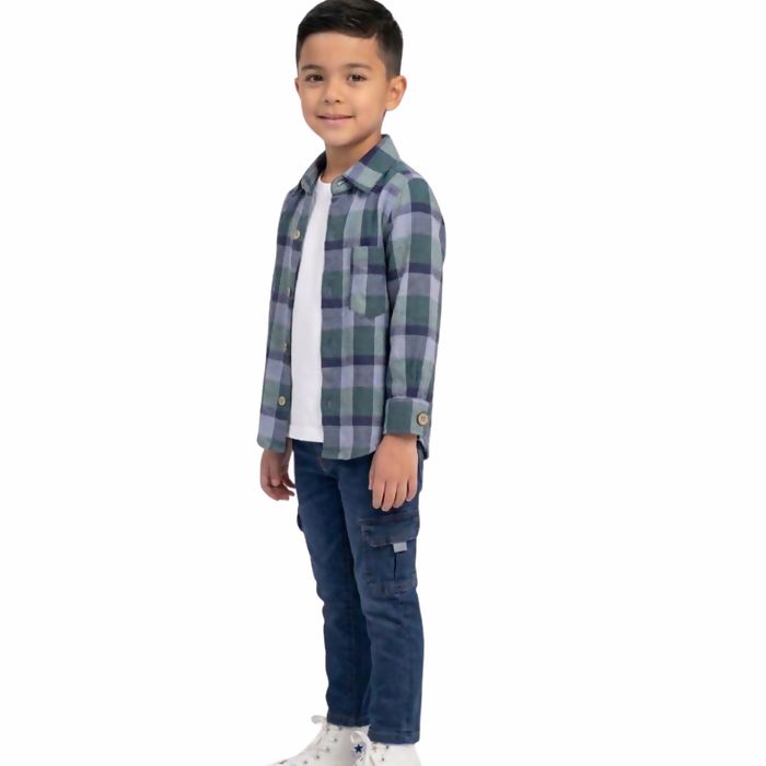 Camisa infantil confeccionada com material de qualidade, oferecendo conforto e excelente caimento. O design em padrão xadrez proporciona um visual clássico e versátil, ideal para diferentes ocasiões. Com acabamento cuidadoso, é uma peça que agrega valor ao mix de produtos e atende lojistas que buscam itens com boa saída no segmento de moda infantil.