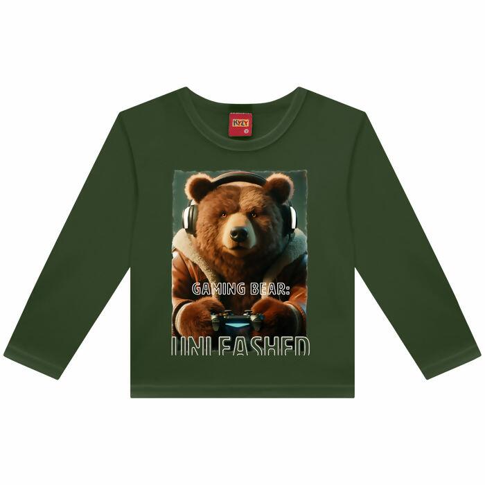 Camiseta Manga Longa Infantil Estampa Urso Gamer 4 ao 8 Kyly | 1000819