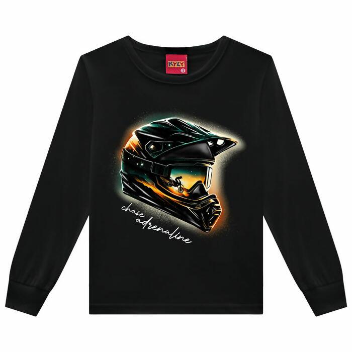 Descrição Camiseta Manga Longa Juvenil Estampa Capacete 10 ao 16 Kyly | 1000834