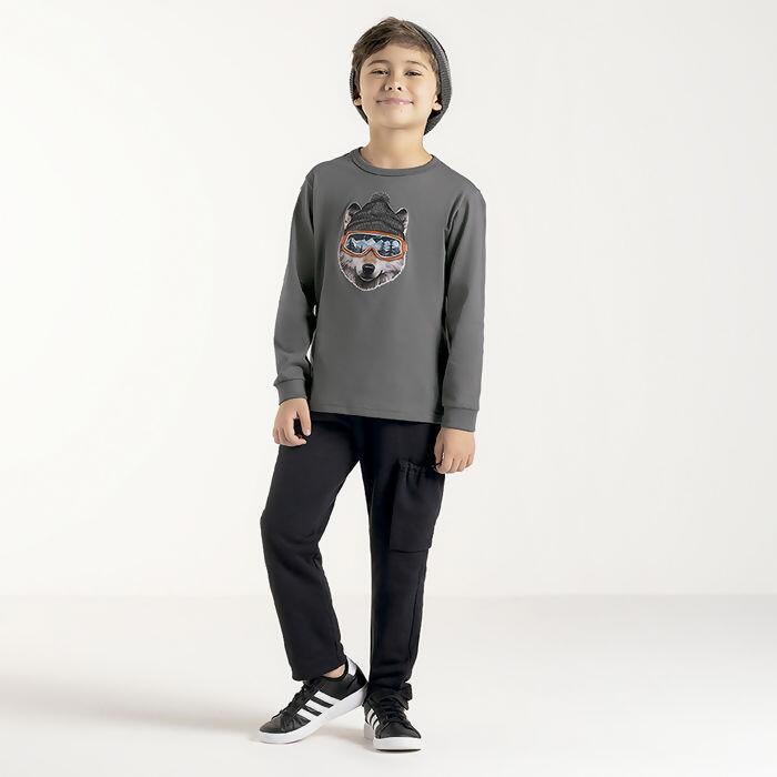 Descrição Camiseta Masculina Manga Longa Lobo Óculos 4 ao 10 Dila | 04548