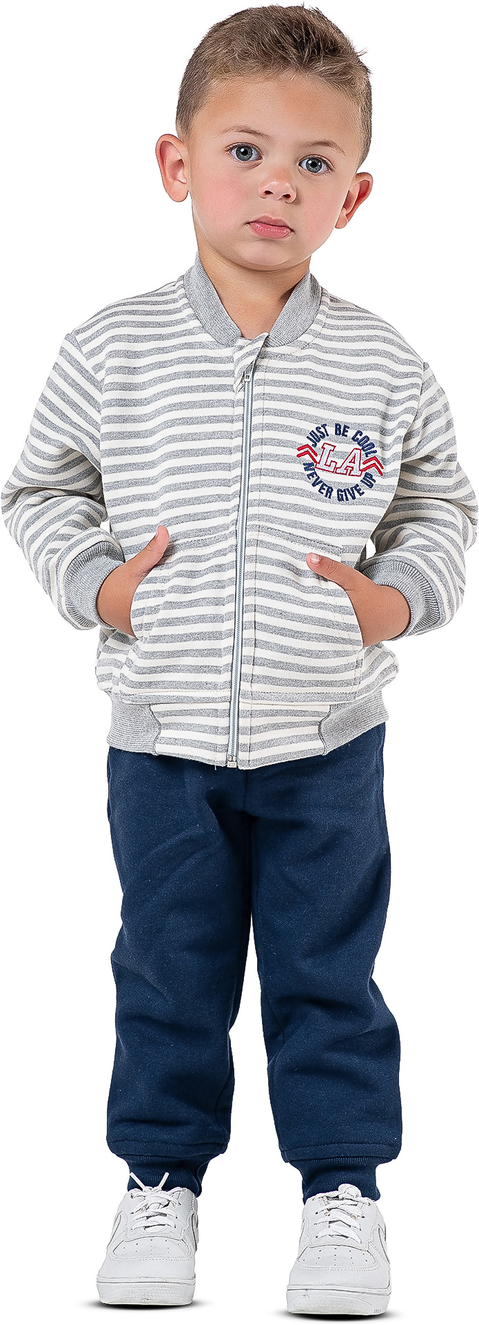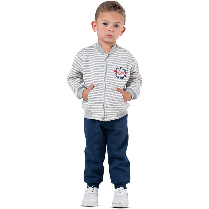 Conjunto infantil masculino com detalhe em bordado, oferecendo conforto térmico e acabamento diferenciado. Peça indicada para a estação mais fria, com ótima aceitação no varejo infantil e bom potencial de giro.