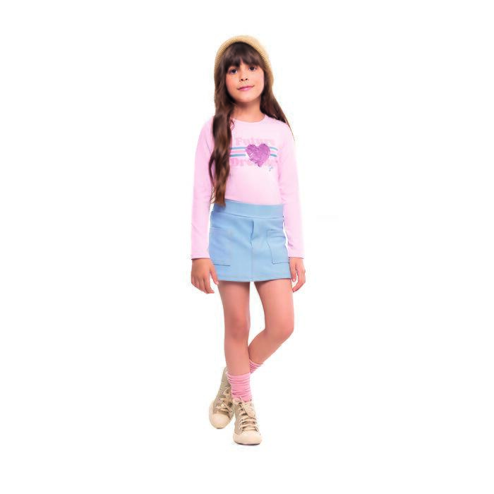 Conjunto infantil feminino composto por blusa e saia, desenvolvido em material confortável que proporciona leveza e praticidade no uso diário. A proposta moderna com inspiração esportiva agrega estilo à peça, tornando-a atrativa no ponto de venda. Um produto versátil e com ótimo potencial de vendas para lojistas.