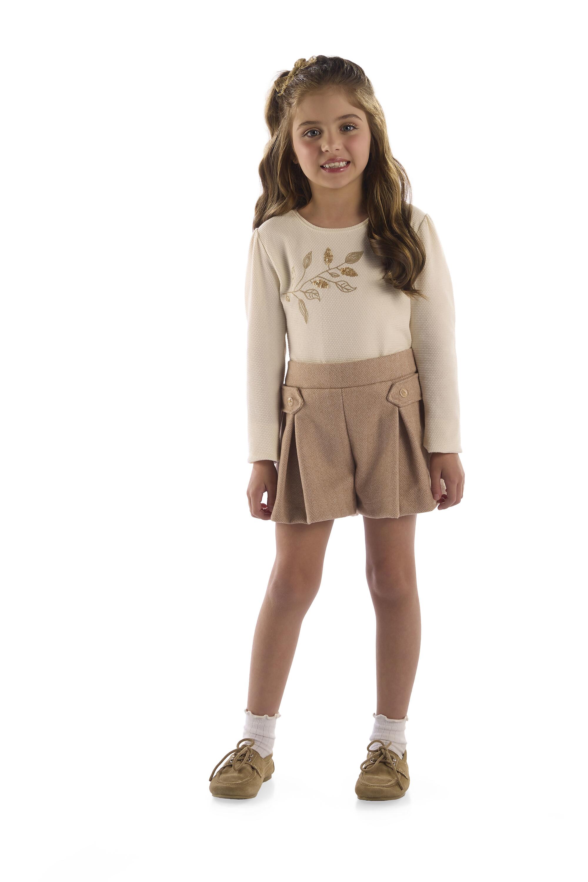 Conjunto infantil feminino composto por blusa com bordado delicado e short, trazendo charme e sofisticação à peça. O acabamento de qualidade e a modelagem confortável garantem excelente apresentação e aceitação no ponto de venda. Um produto ideal para lojistas que buscam itens com alto valor agregado.
