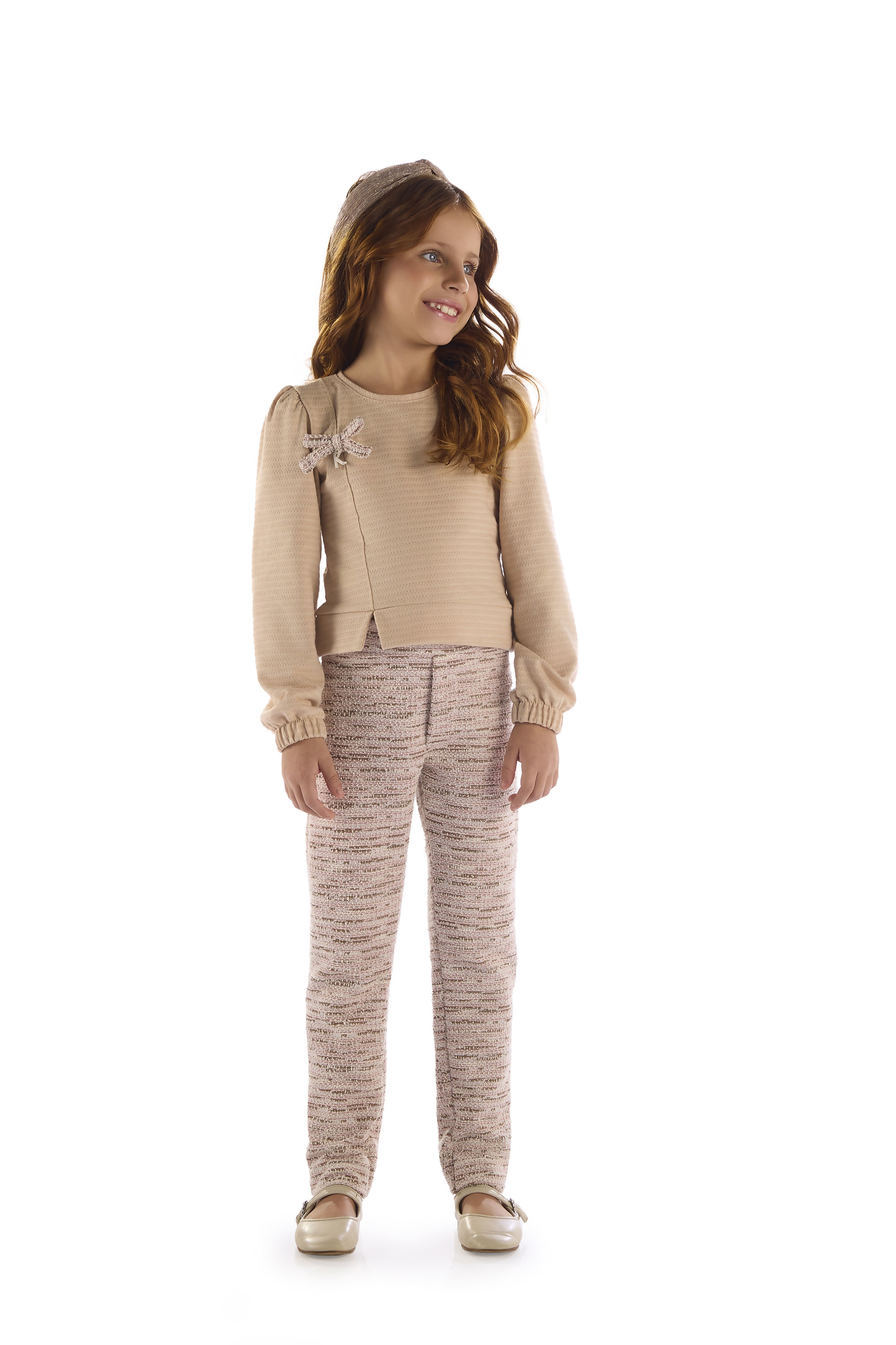 Conjunto infantil feminino composto por blusa com detalhe em laço e calça, trazendo delicadeza e elegância para o look infantil. A modelagem confortável aliada ao acabamento de qualidade torna a peça uma excelente escolha para lojistas que buscam produtos com diferencial estético e boa aceitação no ponto de venda.